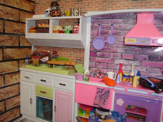 EliminarWonderful kitchen, the brick looks amazing. That was really sweet of Ken to cook for Barbie, he's definitely a keeper.